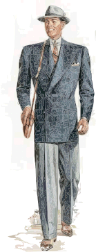 Though during the early parts of the decade men still wore the very structured slim sacque suits that had been popular with gentlemen since the mid-1800's. These suits were ill-fitted from uncomfortable fabrics, they weren't good at maximizing the shape of a man's body. The shoulders were narrow, the sleeves were often too short, the trousers also didn't lend themselves to comfort. |